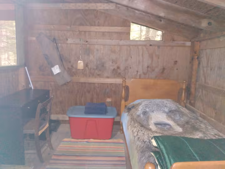 The Writer’s Rustic Retreat Cabin, is nestled in the forest, and offers campers a private space to be immersed in nature. Large picture windows provide wildlife and forest viewing. This cabin includes a lantern, a single bed, and a desk. An extra cot can be set up for a 2nd guest. The Writer’s Retreat Cabin is a bit more private and rustic than the other cabins at Camp Earth Connection. We believe it will be loved by those who enjoy being in the forest and experiencing a feeling of living in the wilderness. There is a water spigot, latrine, and fire-pit with a grill for cooking and campfires. The showers and parking area are a 3-4 min. walk from the cabin. Explore the hiking & mountain biking trails in the adjacent state forest. The camp is conveniently located just 12 miles from Ithaca. The cabin is currently being renovated. Watch for new photos in May! We offer weekly and monthly discounts for this cabin.